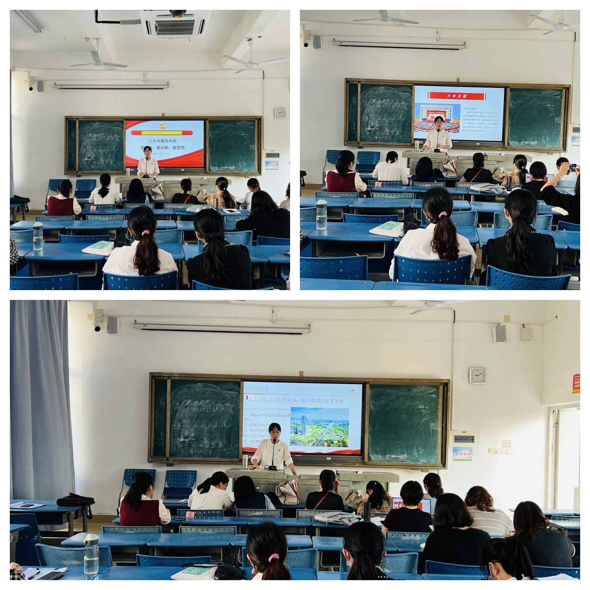 会上,文粉娟以《党的二十大报告中的新观点、新论断、新思想》为主题给支部党员上党课。她从党的二十大报告的总体结构和内在逻辑、党的二十大报告中的核心内容概述、党的二十大报告中提出的新观点、新论断、新思想三个层面进行了知识点梳理和全面系统的理论讲解,重点讲解了大会中关于教育、科技、人才的论述,帮助党员老师更好领会和把握党的二十大精神,自觉肩负起为党育人、为国育才的教育使命。同时强调,全体党员要以此次党课和学习交流为契机,采用线上和线下、集中和自主等多种形式,继续深入学习贯彻党的二十大精神,扎根立德树人的本职工作,推动党的二十大精神融入思政课程和课程思政的教学与科研中,用党的科学理论武装青年学生。她通过深入浅出的讲解,为党员干部全面学习、全面把握、全面落实党的二十大精神启发了思路。