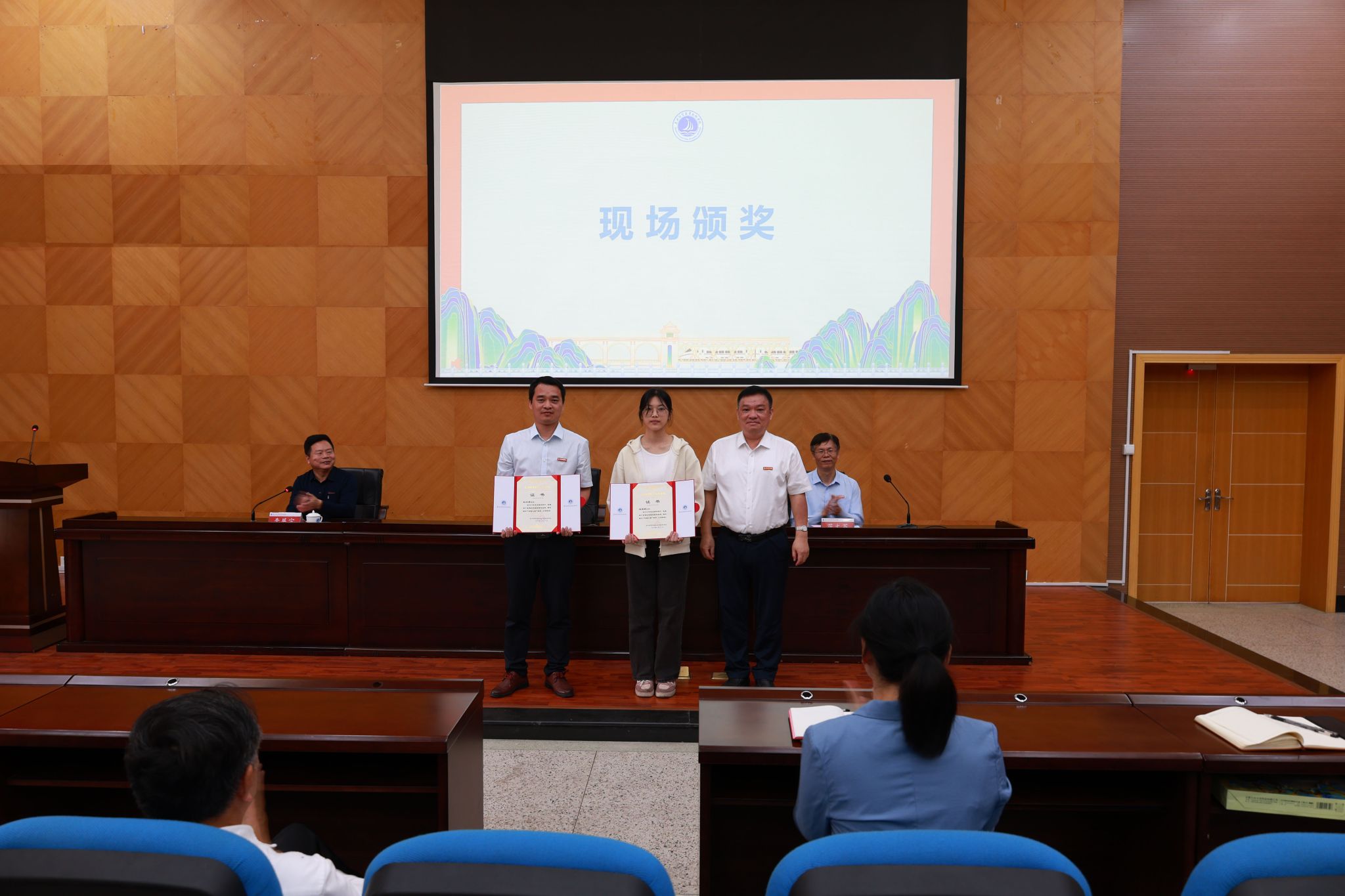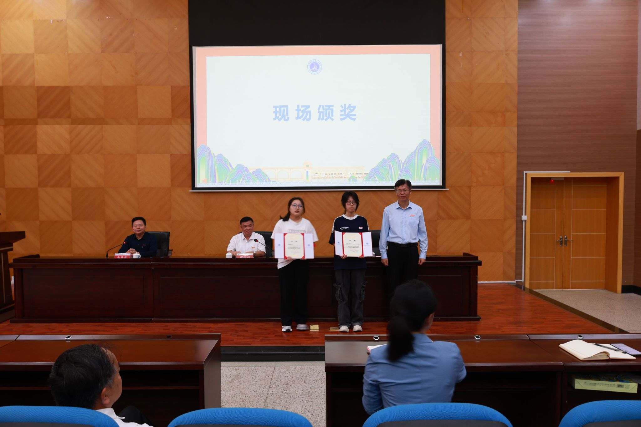 廖伏树、花文苍为“2024年阅读之星”颁发证书,鼓励全校师生参与阅读。
