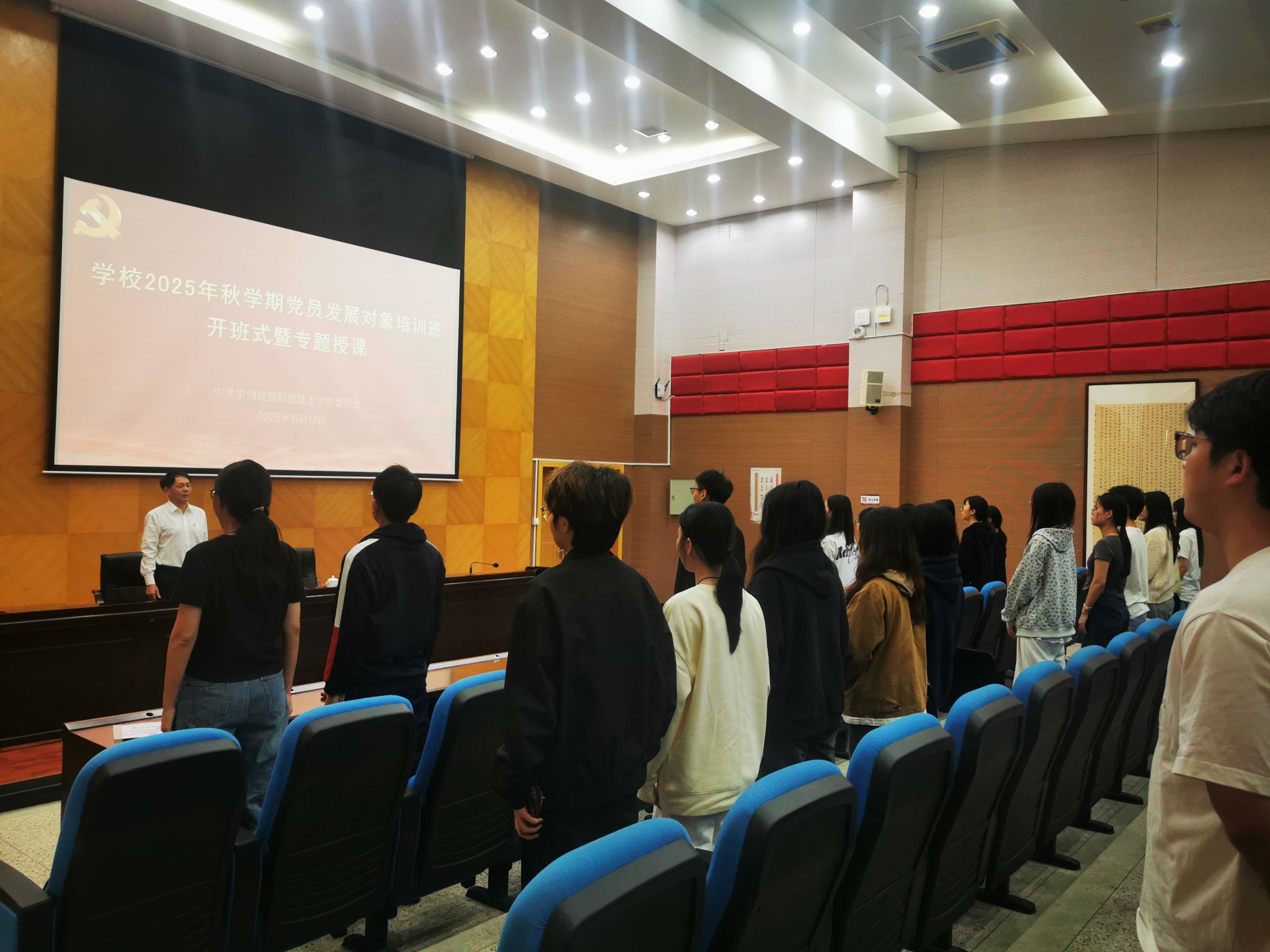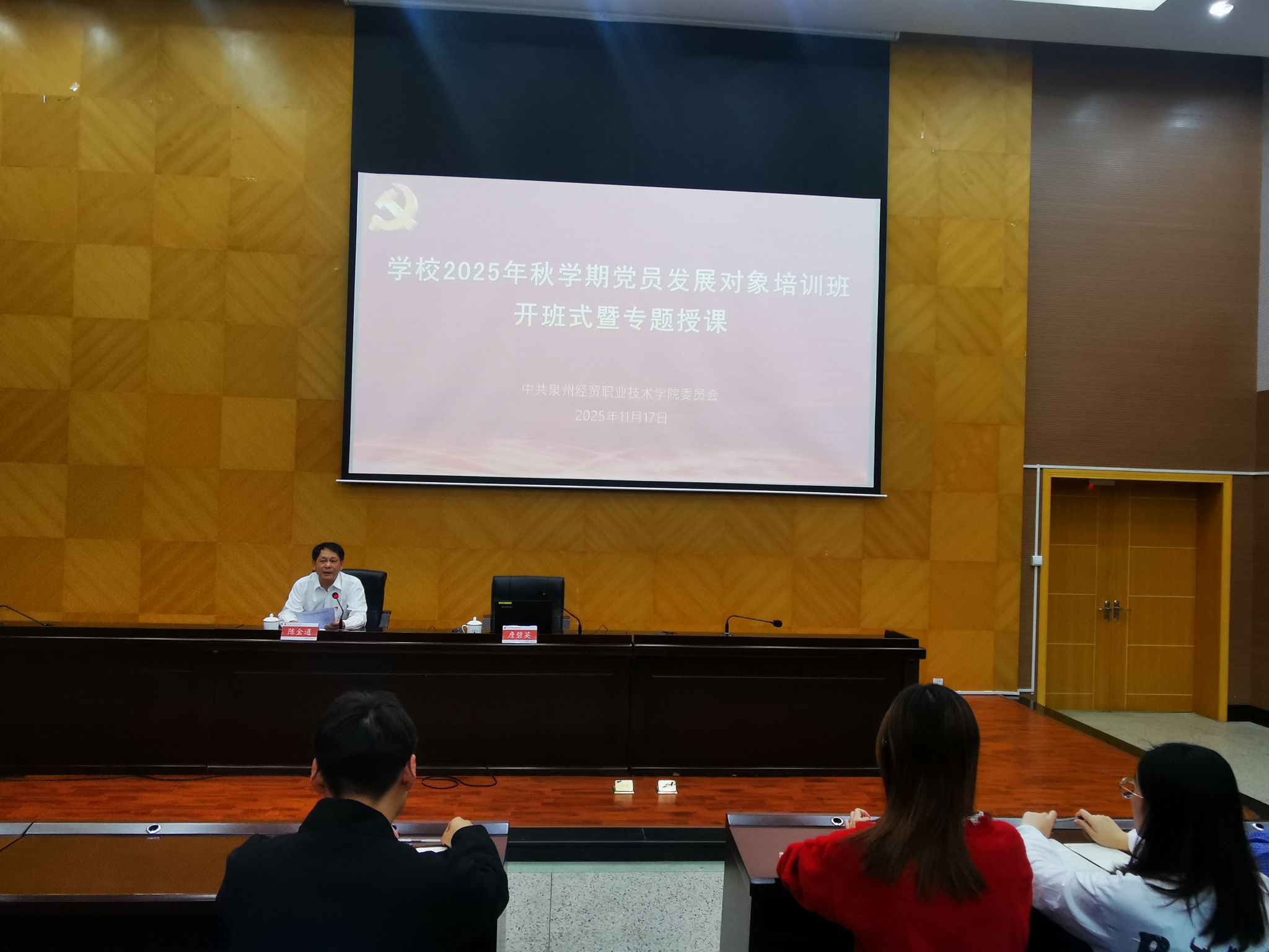 为深入学习贯彻党的二十届四中全会精神,进一步提高党员发展对象的政治素养和理论水平,严把党员发展“政治关”“入口关”“质量关”,切实做好党员教育培训工作,11月17日下午,学校在学术报告厅举办2025年秋学期党员发展对象培训班开班式,并邀请中共泉州市委党校原副校长、二级调研员,现泉州市委老干部党校副校长、泉州老年大学副校长詹碧英教授作专题授课。学校党委副书记陈金通,各党总支、直属党支部专职组织员、组织委员,以及组织部(统战部)有关工作人员和54名党员发展对象参加。