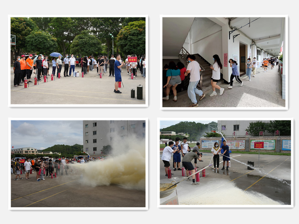 本次演练包括应急疏散演练、消防安全知识讲座、灭火实操演练三个环节。在演练开始前,各系部已做好充分准备,并对师生和相关工作人员进行了安全培训。根据演练预案安排,学生及教职员工们分散在院内各教室、实训室、宿舍、食堂等地。当标志着演练开始的警报声响起,楼内各楼梯口、疏散口等重点区域的工作人员迅速就位,引导参与演练的人员迅速、有序完成疏散,并在指定地点集合,疏散演练顺利完成。