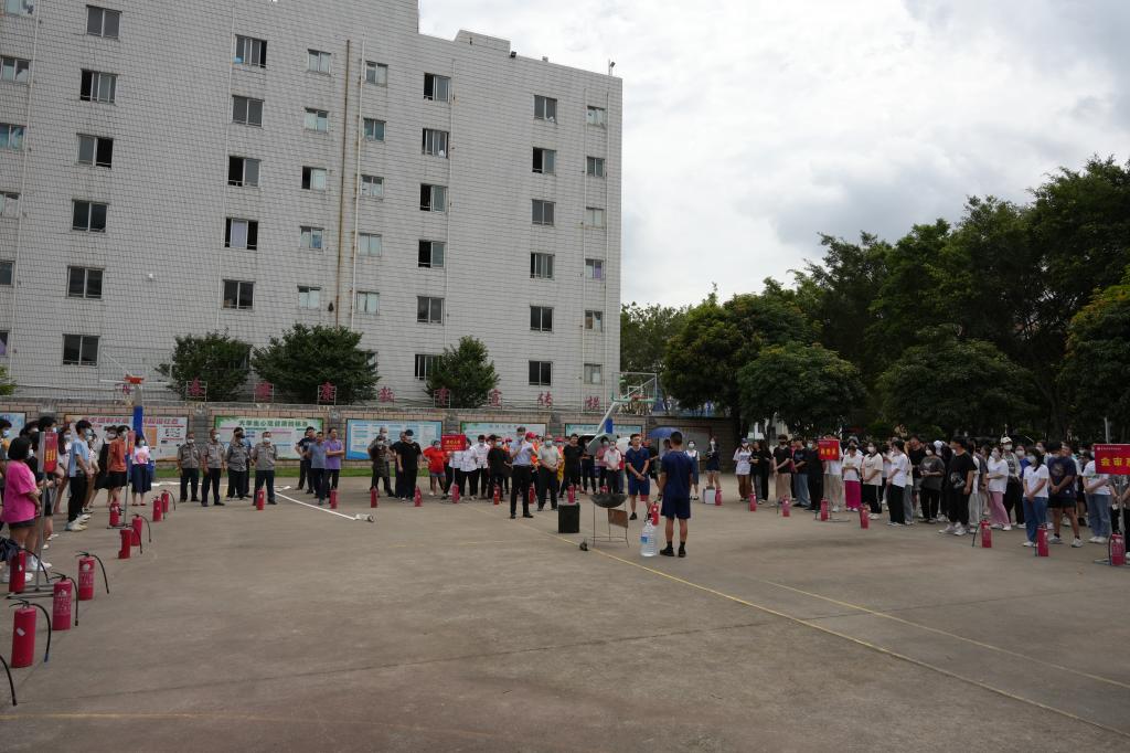鲤城区消防救援大队的官兵开展了现场消防安全知识讲座,并组织学生、教职工代表使用干粉灭火器和消防水带进行灭火实操演练。