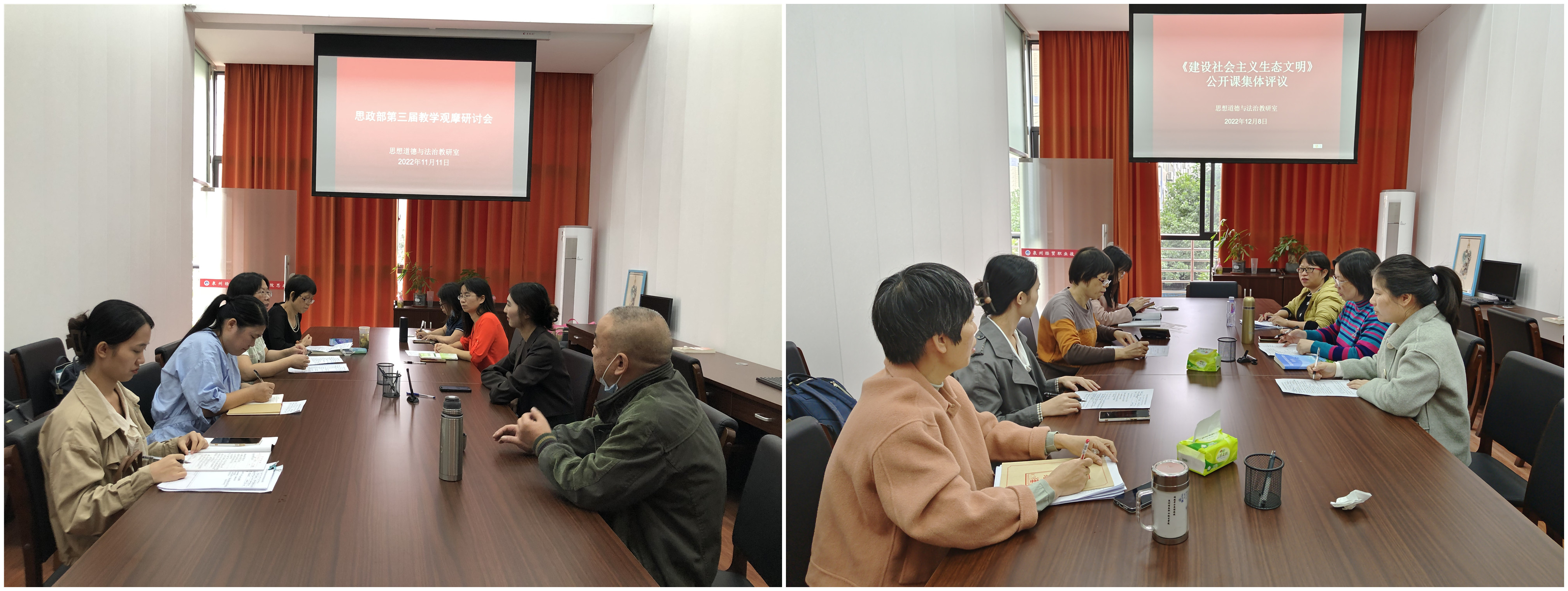 公开课环节中,教师围绕《习近平新时代中国特色社会主义思想概论》《思想道德与法治》《形势与政策》等课程,紧密结合党的二十大精神和授课专业实际,精心备课、认真授课,灵活运用现代教学方式,突出重点、突破难点,充分调动学生的积极性和主动性,并通过课前“集体备课”、课中“听课”、课后“评课”等方式,增进教师间相互交流学习,激励教师们不断探索创新、积累经验,进一步促进学院思政课教学工作的高质量发展。