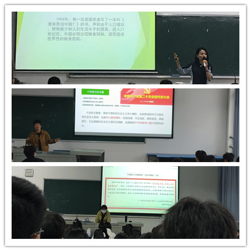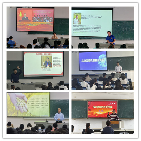院领导上思政课环节中,学院党委书记周文心,党委副书记、院长黄敬前,党委副书记陈金通,党委委员副院长花文苍、沈永希、张庆武等先后走进“形势与政策”课的教学课堂,以“伟大时代的历史跨越”“保障粮食安全的中国策”“乌克兰危机演变及影响”等主题,为学院师生讲授思想政治理论课。