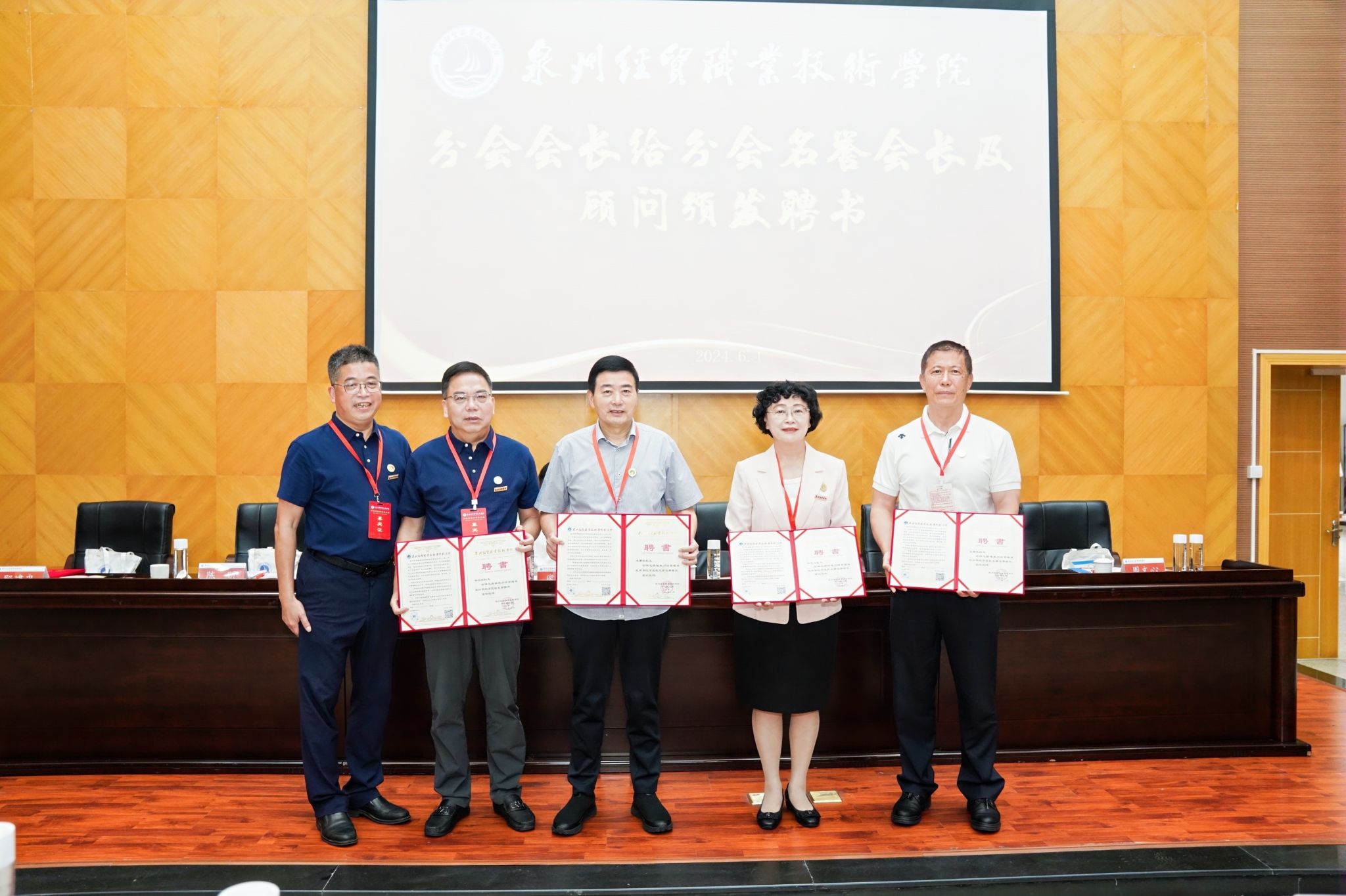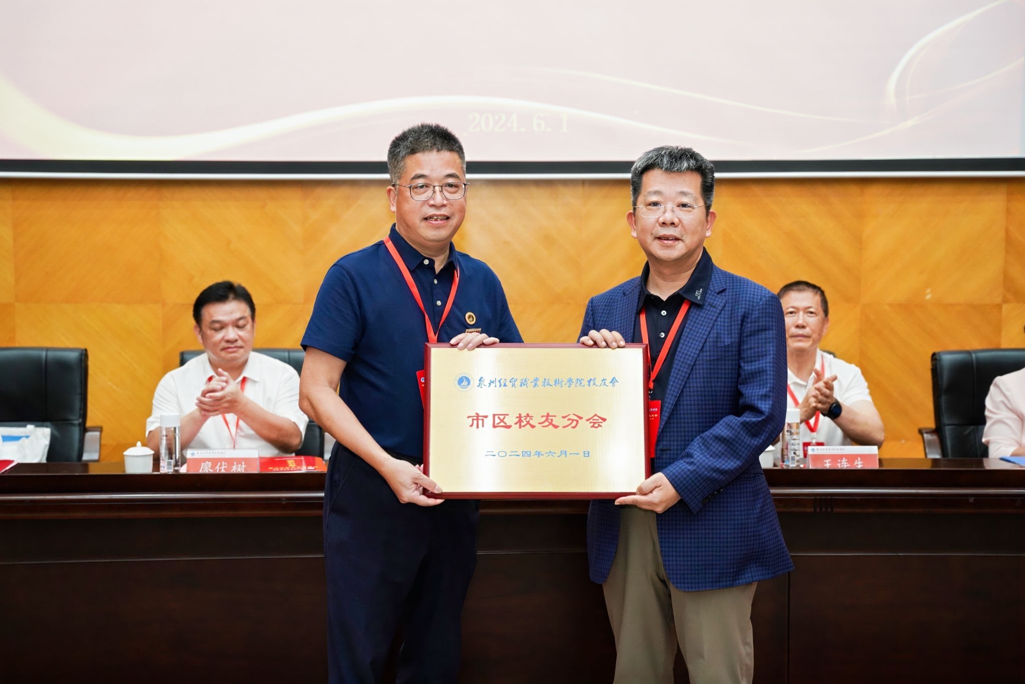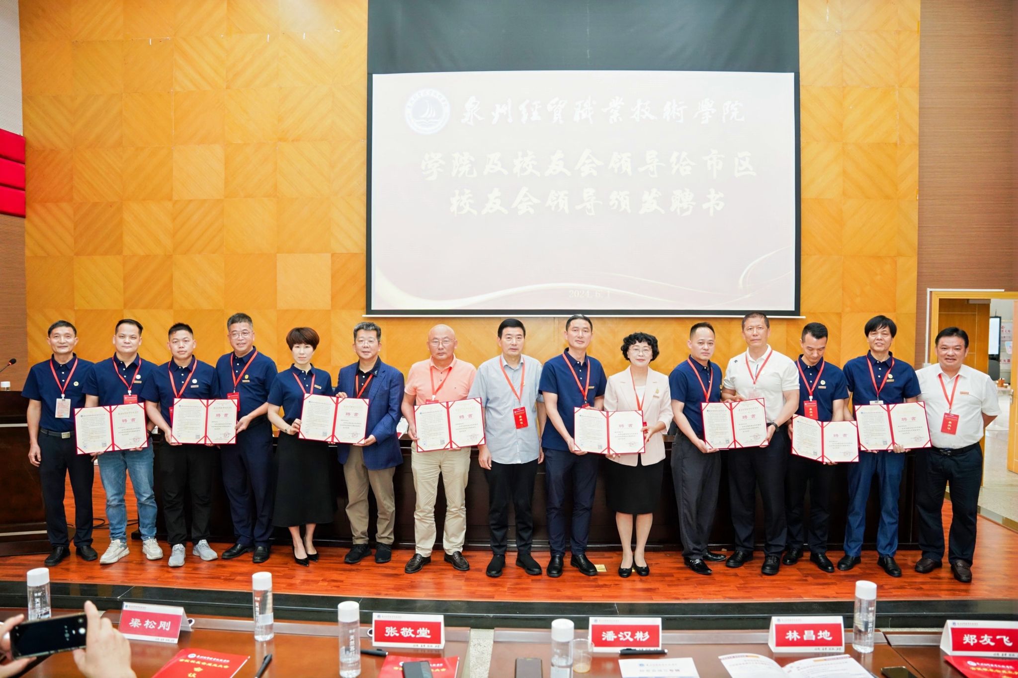 学院及校友会领导为市区校友会领导颁发聘书。