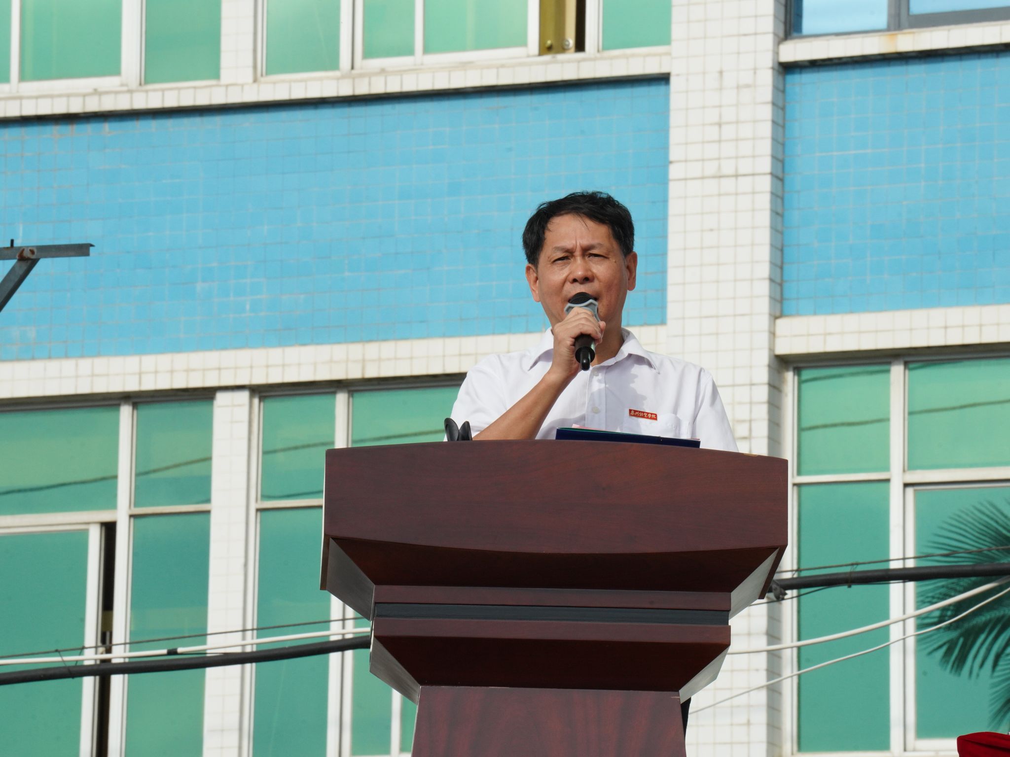 陈金通副书记向远道而来、不辞辛劳承担本次军训任务的教官们表示衷心的感谢和崇高的敬意!向刚刚踏入经贸学院这片热土一个多月,满怀憧憬与梦想的2024级新生致以最热烈的欢迎和美好的祝愿!他简要介绍了学校的办学历史和取得的成绩,他强调,军训是大学生活的重要一课,它不仅是一次身体上的锻炼,更是一次心灵上的洗礼,全体新生要以这次军训为契机,不断提升自己的能力素质和个人修养,珍惜难得的机会,以饱满的热情、昂扬的斗志、顽强的毅力,投入到每一项训练中去,用自己的实际行动,展现经贸学子的风采和魅力,让青春在汗水中闪光,让梦想在奋斗中绽放。希望教官们严格要求、科学施训,既要确保军训的安全和效果,又要注重人文关怀和心理疏导,让每一位新生都能在军训中收获成长和进步。希望相关部门和辅导员积极配合、做好保障,为军训工作的顺利开展提供有力支持。