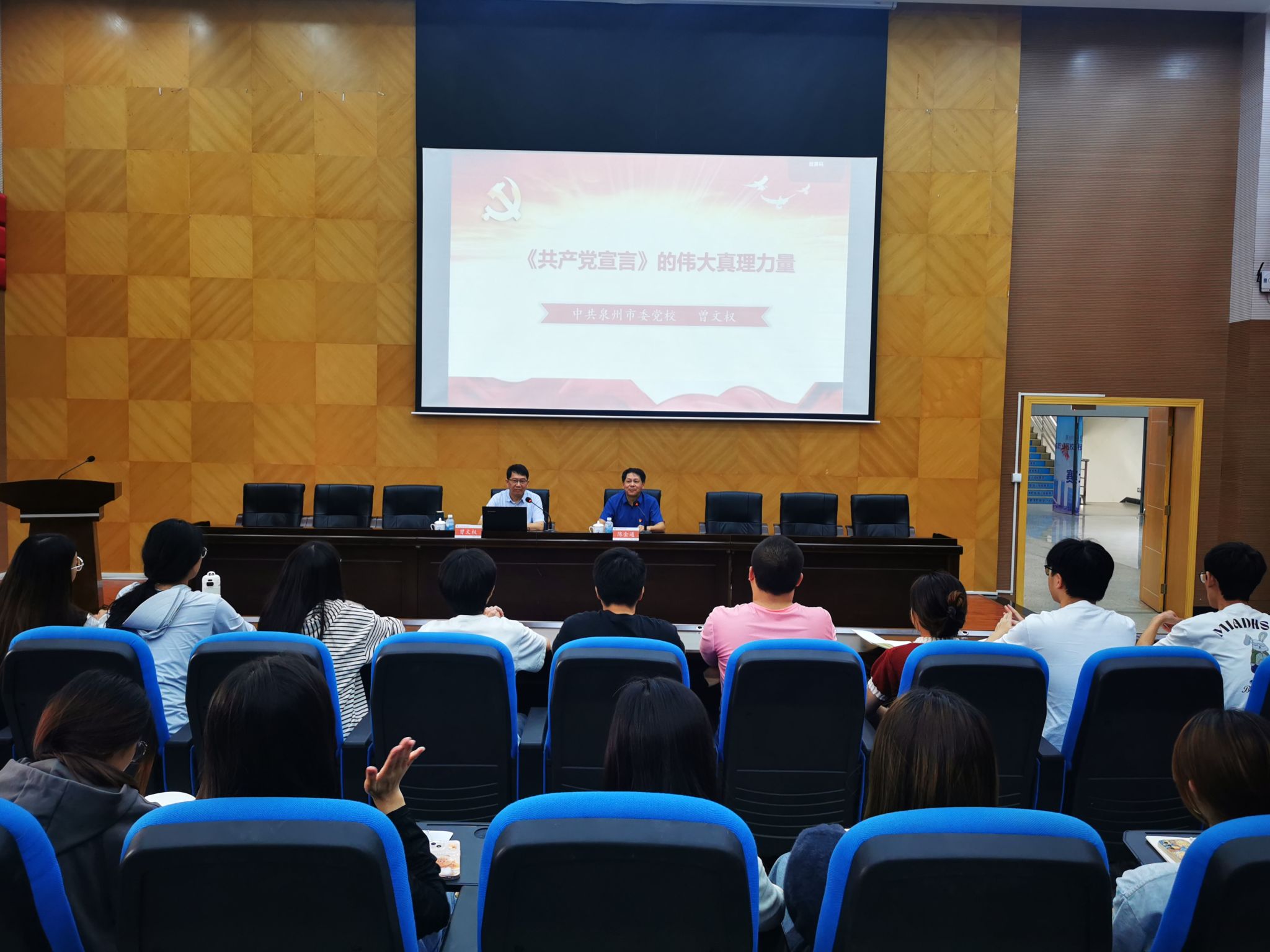 中共泉州市委党校曾文权副教授作题为《〈共产党宣言〉的伟大真理力量》的专题授课,他系统全面、深入浅出地解析了《共产党宣言》是一本什么书、《共产党宣言》说了什么,以及《共产党宣言》对中国的影响,授课内容丰富,讲解生动。