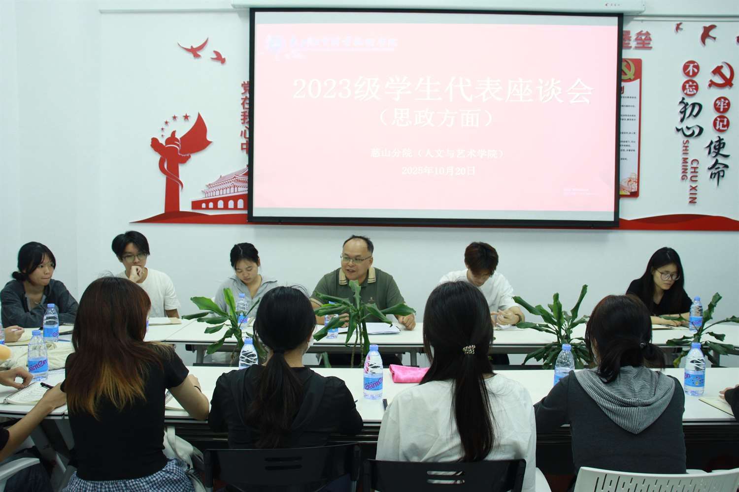 为切实了解学生学业发展与生活状况,广泛听取意见建议,进一步提升育人质量与学生服务水平,慈山分院(人文与艺术学院)于10月中下旬陆续组织召开2023级、2024级、2025级学生代表系列座谈会。会议聚焦教育教学、学风建设、生活服务与职业发展等重点议题,学院相关负责人、教师代表及各年级学生代表参与。