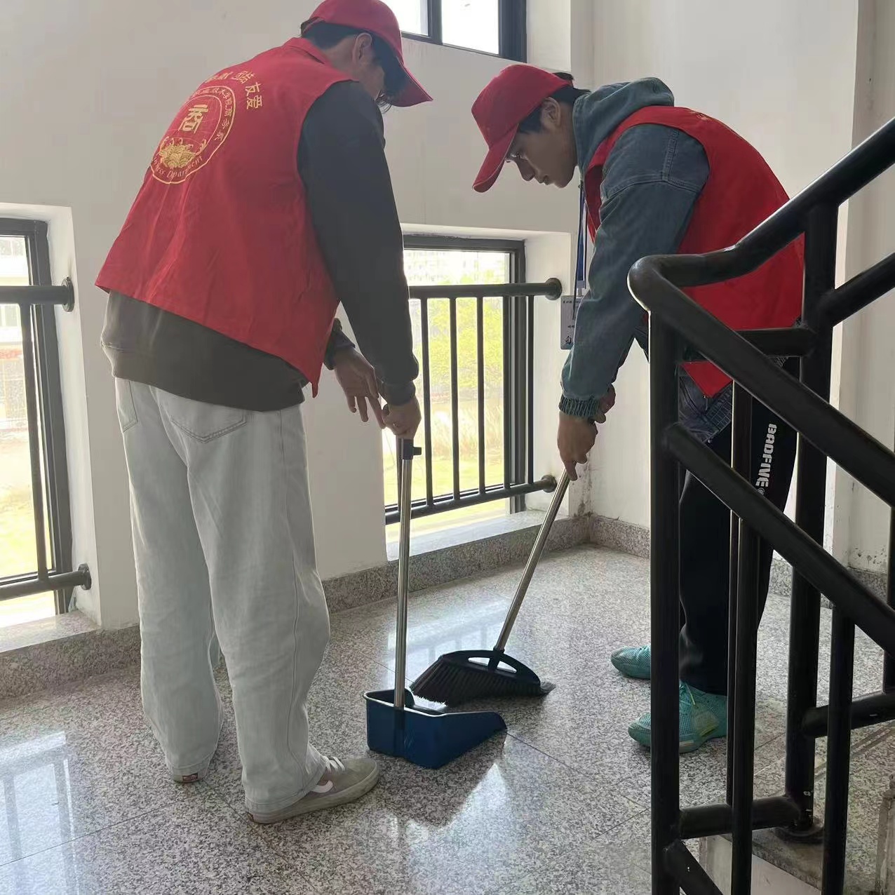 开展一次志愿服务活动。志愿者们身穿红马甲,手持扫帚、簸箕等工具,在教学楼、宿舍楼等处开展“践行雷锋精神,共创校园美好环境”志愿服务,用实际行动践行共建文明校园的理念,营造干净整洁的学习环境。
