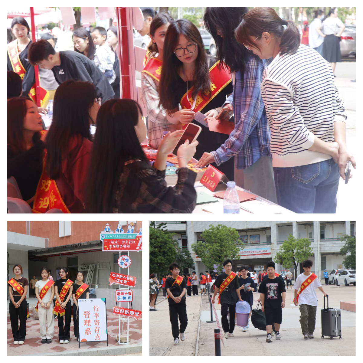 迎新当天,管理系党总支共有12名党员教师、28名入党积极分子以及100多名学生干部响应党总支发出的倡议书。他们积极加入管理系党总支组建的迎新志愿服务队和入党积极分子先锋队,主动前往在新生报到点、新生宿舍、动车站、汽车站等处设置的党员示范岗、“一站式”学生社区服务驿站报到,在新生手续办理、行李转运、宿舍引导、个人事务向导等方面提供热情细致周到的服务,展现了管理系党员干部、入党积极分子以及团学干部的良好形象,让来自各地的2023级管理系萌新们感受管理大家庭的暖心关怀。