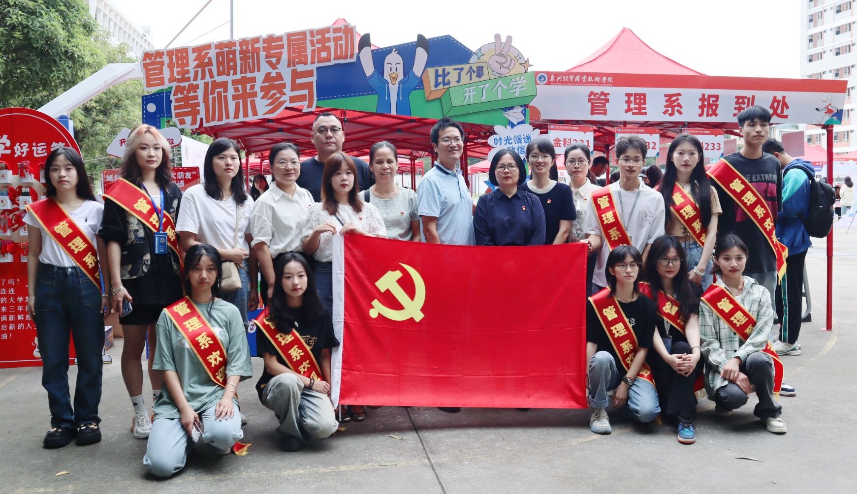 10月10日,管理系迎来2023级新生。为做好迎新工作,管理系党总支坚持党建引领,结合正在开展的学习贯彻习近平新时代中国特色社会主义思想主题教育,周密部署、迅速行动,组织动员各党支部和全体党员、入党积极分子在迎新工作中主动作为、担当有为,用速度、温度、效度、精度扎实做好各项工作,让党旗在迎新一线高高飘扬,让党徽在迎新一线闪闪发光,让习近平新时代中国特色社会主义思想浸润师生心田。