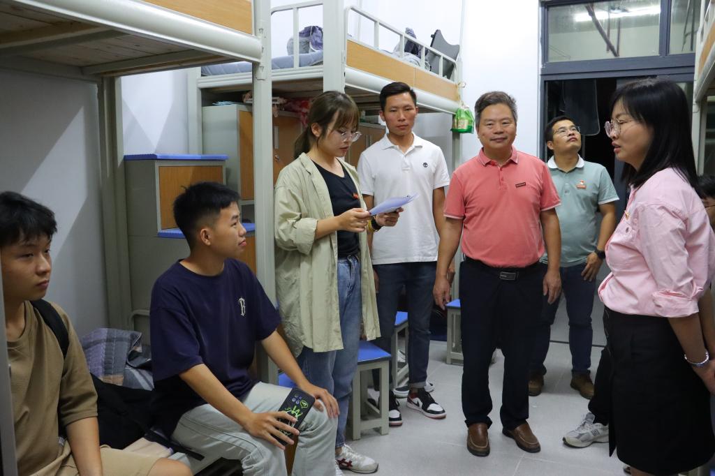 系主任李展宗、系党总支副书记苏素琼、系综合办公室主任吕晓磊、2023级新生辅导员深入新生宿舍走访,与学生进行亲切交谈,了解同学们的家庭情况、兴趣爱好、生活需求等,关心他们来校后的适应情况,鼓励同学们在学校期间扎实学好专业知识,积极参与社会实践,做好自身规划,提升自身素养。
