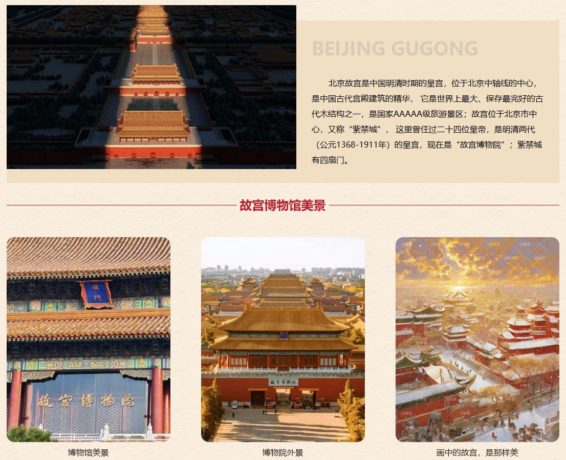 在为期2周的实训中,同学们首先通过理论学习,对博物馆的基本概念、发展历程和功能价值进行了全面了解,随后根据自己选择的博物馆主题,包括故宫博物院、中国国家博物馆、中国美术馆等知名文博机构进行线上观摩,再通过线上博物馆提供的各类资源进行需求分析,深入了解了博物馆的运营模式、藏品管理、展示方式等方面的知识。在掌握了相关知识后,同学们开始运用所学的前端技术,为博物馆设计一系列具有交互功能的网页和移动应用,包括博物馆的官方网站、在线展览、数字藏品展示等功能。其中,陈彤、郑仪凡、肖莹三位同学的作品——“江西博物馆”“故宫博物馆”“湖北博物馆”,色彩艳丽、布局有特色、整体设计风格与博物馆主题高度契合,受到了老师和同学的一致好评。