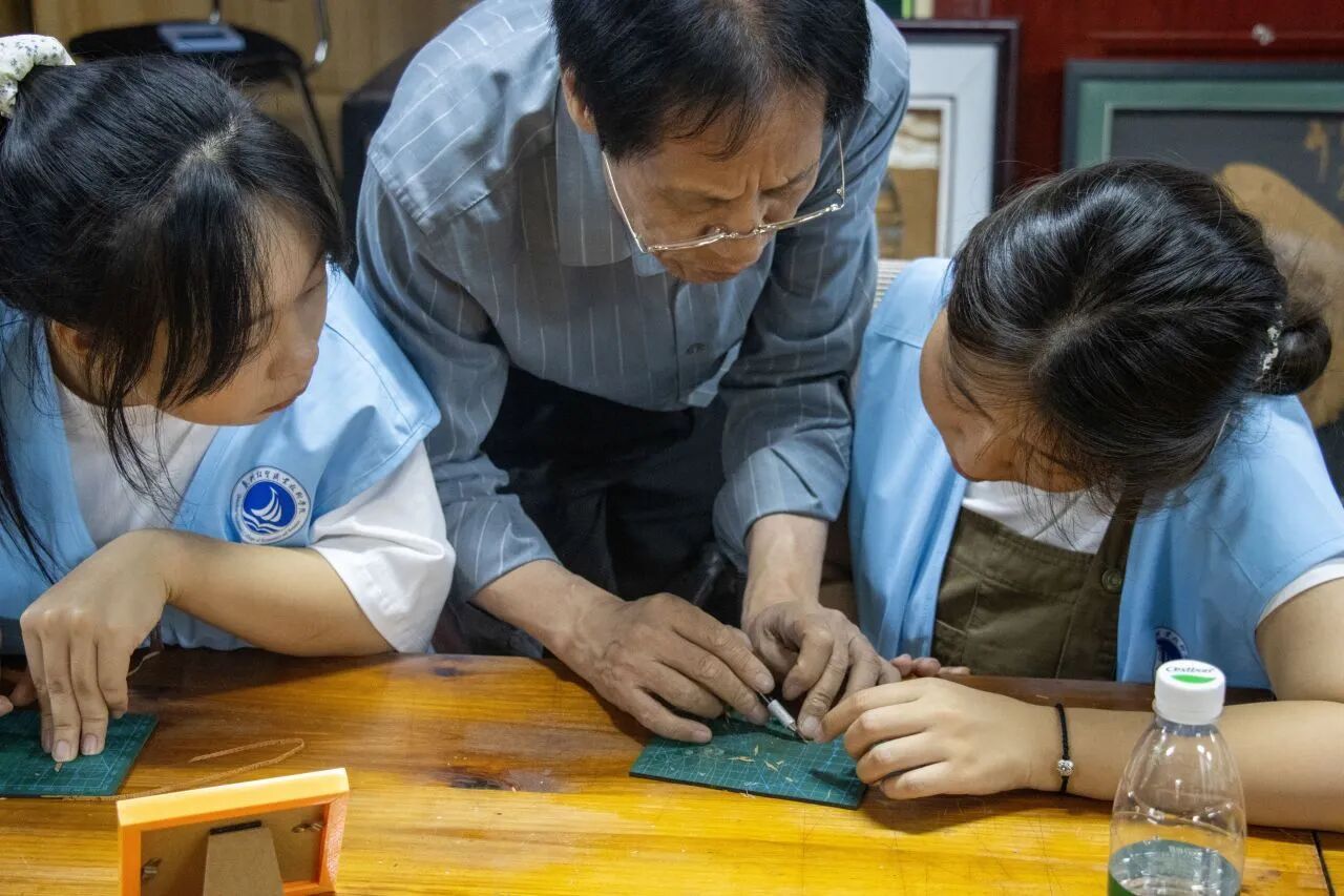 福建省非遗博览苑与福州非遗展示馆,成为深度课堂。脱胎漆器的华彩、寿山石雕的凝练、闽剧的婉转,在专业讲解中层层剥开其历史与美学内核。而最动人的一课,在软木画代表性传承人陈君锟的工作坊上演。陈老师“以刀代笔”,示范如何在纤薄软木上雕刻大千世界。学子屏息凝神,在老师手把手指引下运刀。“每一刀都要屏息凝神。”亲身体验方知,工匠精神不仅是技艺,更是沉潜专注的生命状态。