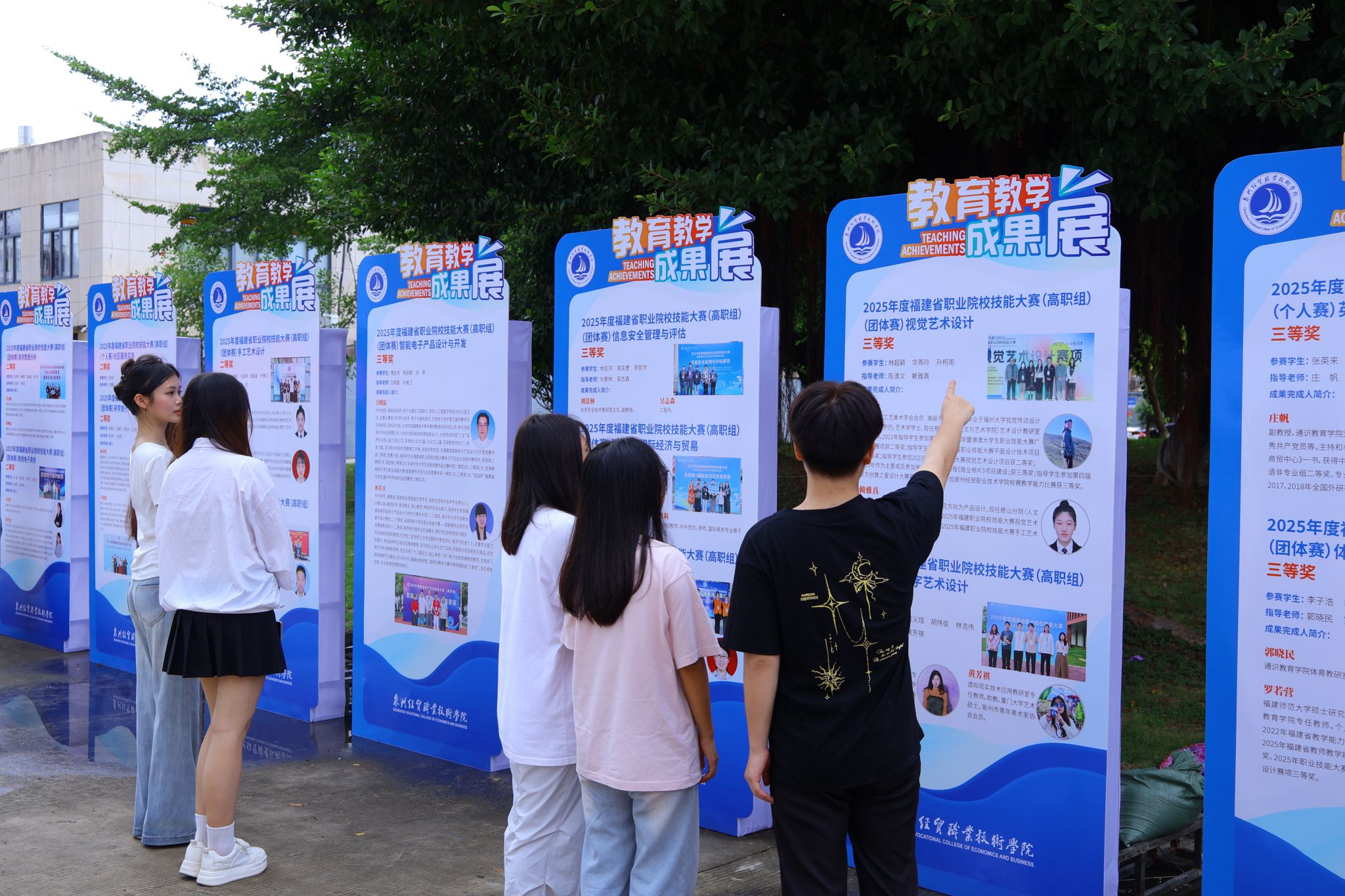 儿子在一旁兴致勃勃地参与迎新活动,林凯的母亲林女士则驻足于学校精心布置的“2025年教育教学成果展”前。展板上的各类奖项和扎实的育人成果,让她更放心。她笑着告诉记者:“看到这些,我对孩子未来三年在这里的学习和生活,充满信心。”