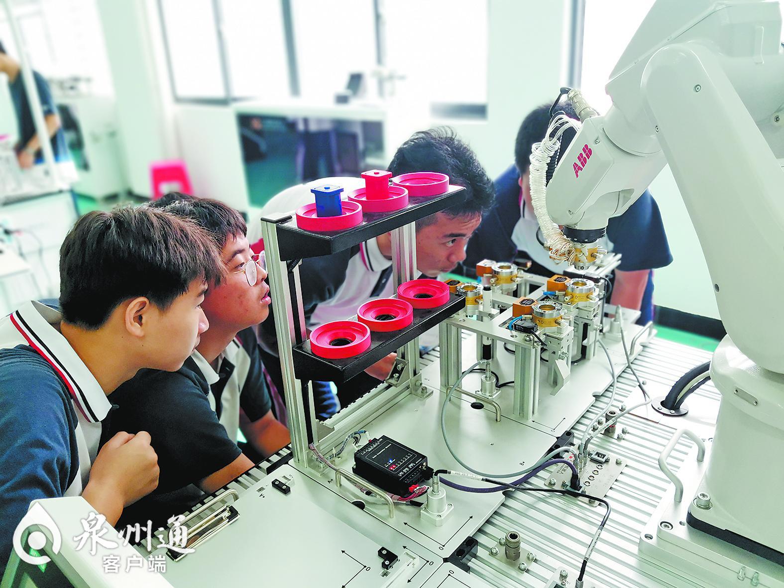 除了高职外,我市不少中职院校也开展了精彩纷呈的职业教育宣传活动。近日,在南安职业中专学校校园内,第二十届技能节活动迎来了一批参观的中小学生,让他们能近距离感受职教魅力。“快看,这台工业机器人好智能啊……”看到这些炫酷的场景,孩子们兴奋地鼓起掌来,“长大了,我也想当一名机器人操控手!”