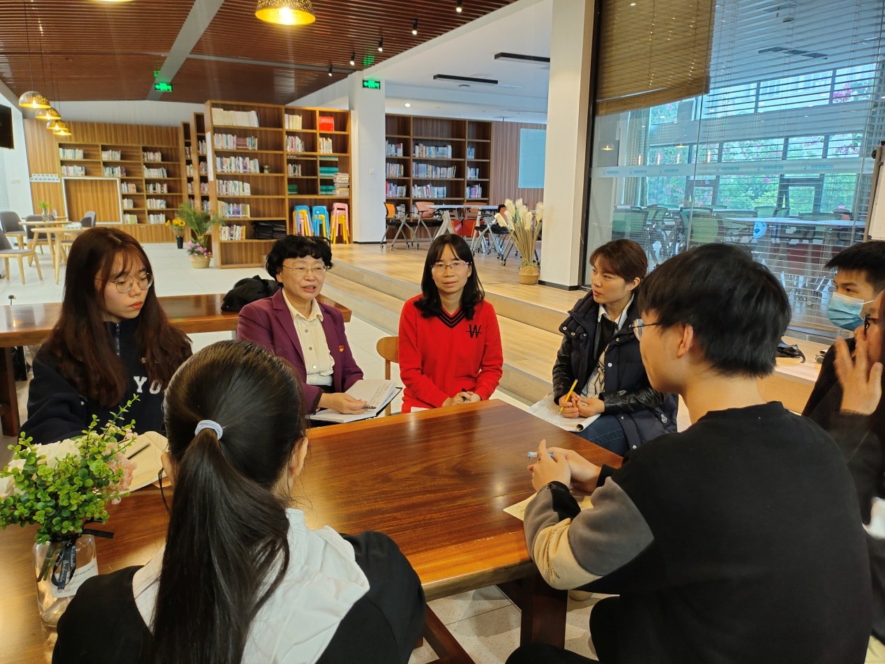 2020年12月8日下午,学院党委书记周文心在教师发展中心与青年马克思主义社团、习近平新时代中国特色社会主义思想读书社学生进行调研座谈、指导工作。思政部负责人文粉娟、思政部专任教师胡小剪及两个社团的部分学生、青年代表参加座谈会。