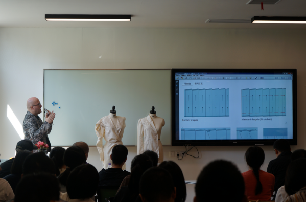 11月2日,国际服装制版大咖、原迪奥版型技术总监Duominique Pellen先生、中法国际交流促进会会长毕嘉森女士、福建省服装设计师协会主任汪泳、福建省服装设计师协会版型技术委员会主任殷磊等一行莅临学院开展服装版型技术培训活动。Duominique Pellen先生在学院教师发展中心以“2020/2021秋冬国际时尚版型技术分解”为题开展了为期一天的培训讲座,来自七匹狼、柒牌、361°、双喜制衣、佐代服饰等企业的技术骨干和制版师、福建省各大中专院校教师及学院服装设计与工艺专业的部分师生参加了本次培训活动。