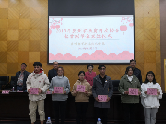 12月6日下午,我院在学术报告厅举行2019年泉州市扶贫开发协会扶贫助学金发放仪式。学院党委书记周文心,党委委员、副院长赖东升,党委委员、副院长花文苍,学生处、财务科、各系学生工作负责人以及全体受助学生参加仪式,仪式由学生处处长王月升主持。