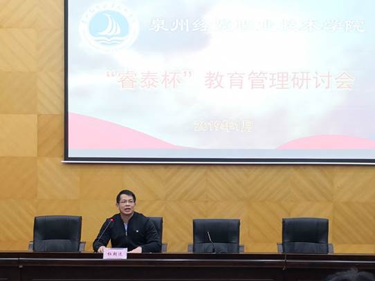 2019年1月16日下午,我院在学术报告厅举办“睿泰杯”教育管理研讨会。学院党委书记周文心,党委副书记、院长杜朝运,党委副书记、纪委书记陈理明,党委委员、副院长花文苍出席,学生处及各系学生工作负责人、辅导员、班主任参加了会议。研讨会由学生处处长王月升主持。