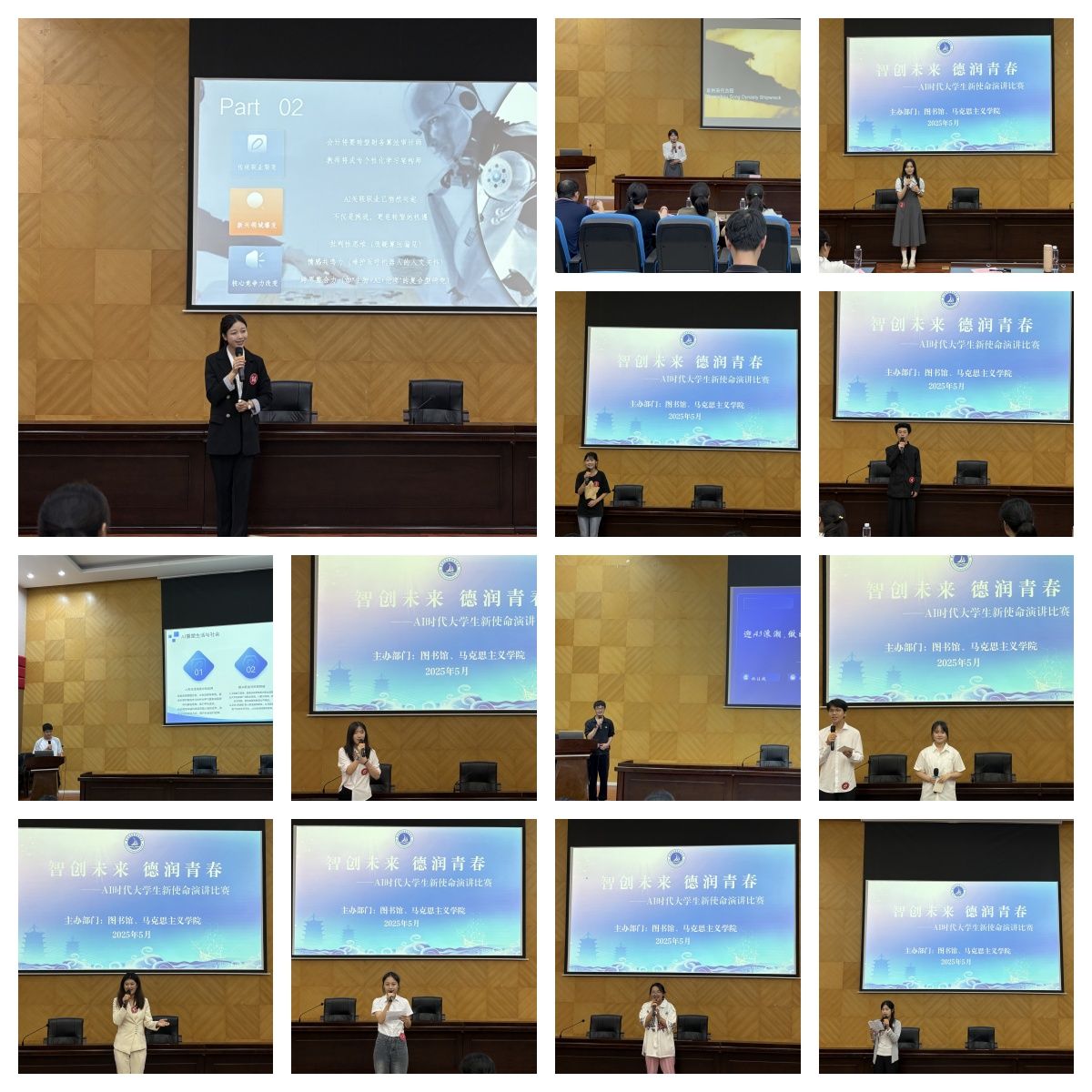 5月23日,我校在学术报告厅举办“智创未来 德润青春——AI时代大学生新使命”演讲比赛。