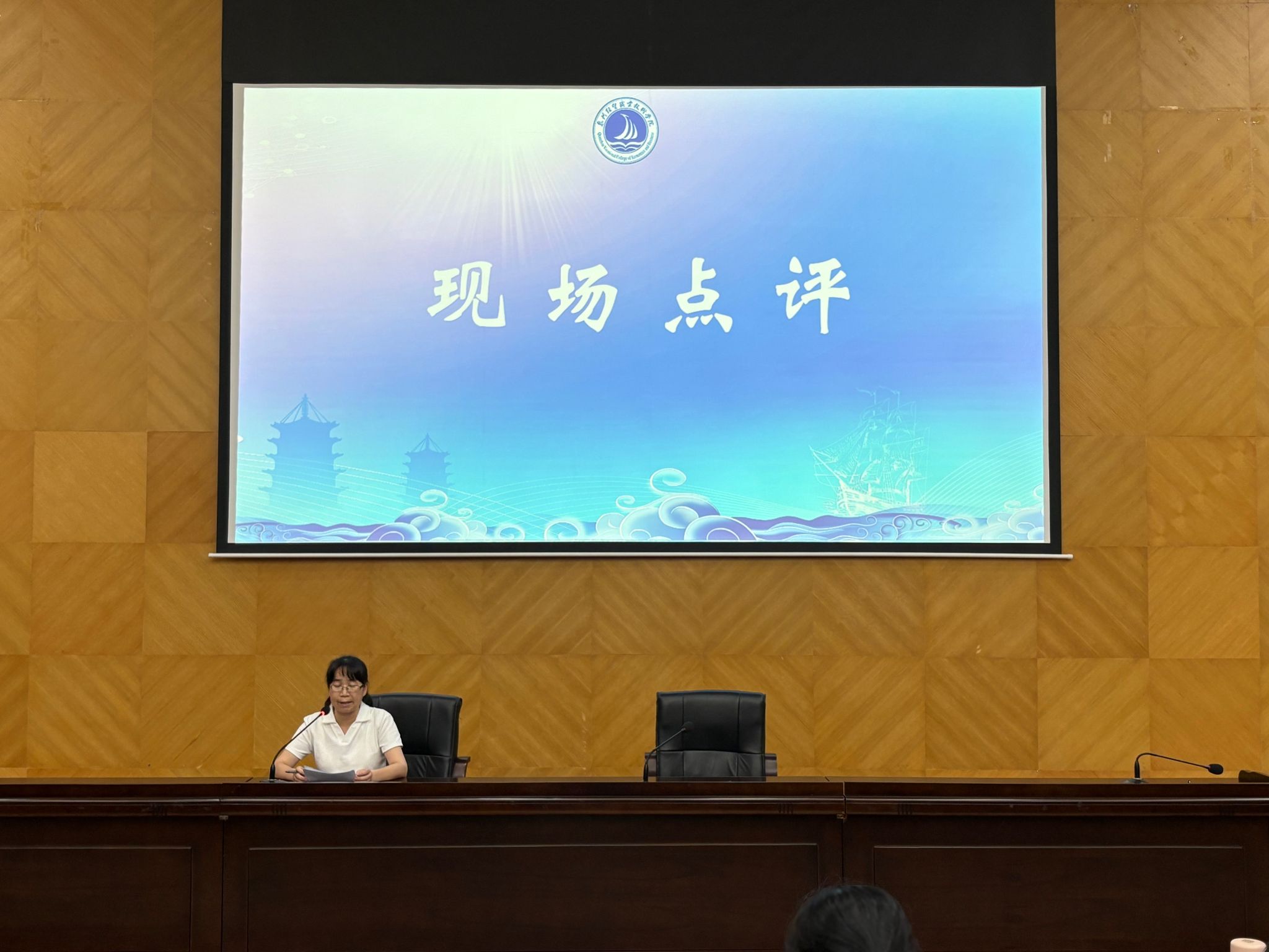 马克思主义学院副院长文粉娟对本次比赛进行了点评。她肯定了选手们的表现,演讲内容精彩,紧扣主题,给人留下深刻印象,同时也指出存在的不足并提出意见和建议。