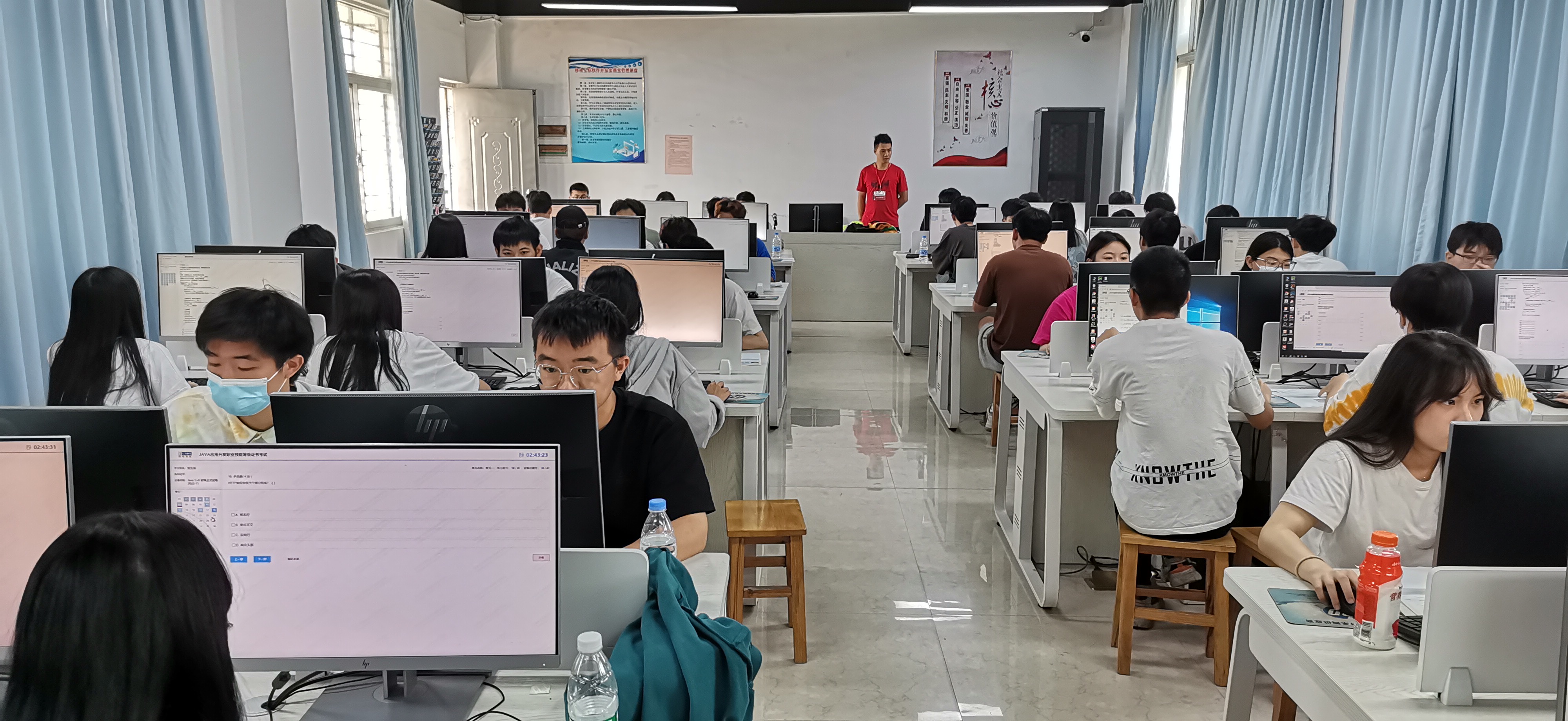 11月19日,Java应用开发职业技能等级证书认证考试在我院举办,考试在信息技术系专业机房举行,移联21级三个班140位同学参加考试。考试分为理论题和实操题,考核Java应用开发职业岗位技能。学生通过证书考试,获得企业颁发的Java应用开发职业技能等级证书,有助于学生将来从事Java程序员、软件测试员、软件运维等Java应用开发相关岗位工作。