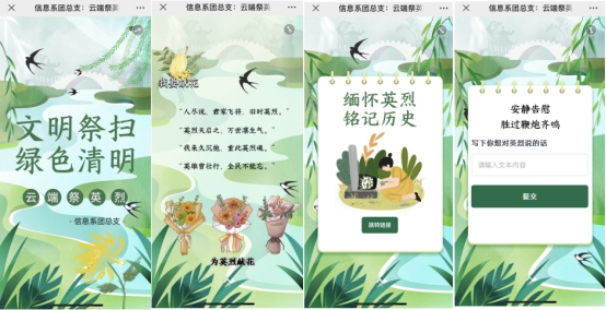 清明节期间,信息系团总支还将组织学生参与“网上祭英烈”活动,在网上写下对革命先辈的寄语,表达自己的哀思。通过开展线上线下祭英烈活动,引导学生牢记历史,感恩革命英烈创下的丰功伟绩,传承红色基因,弘扬优良传统。