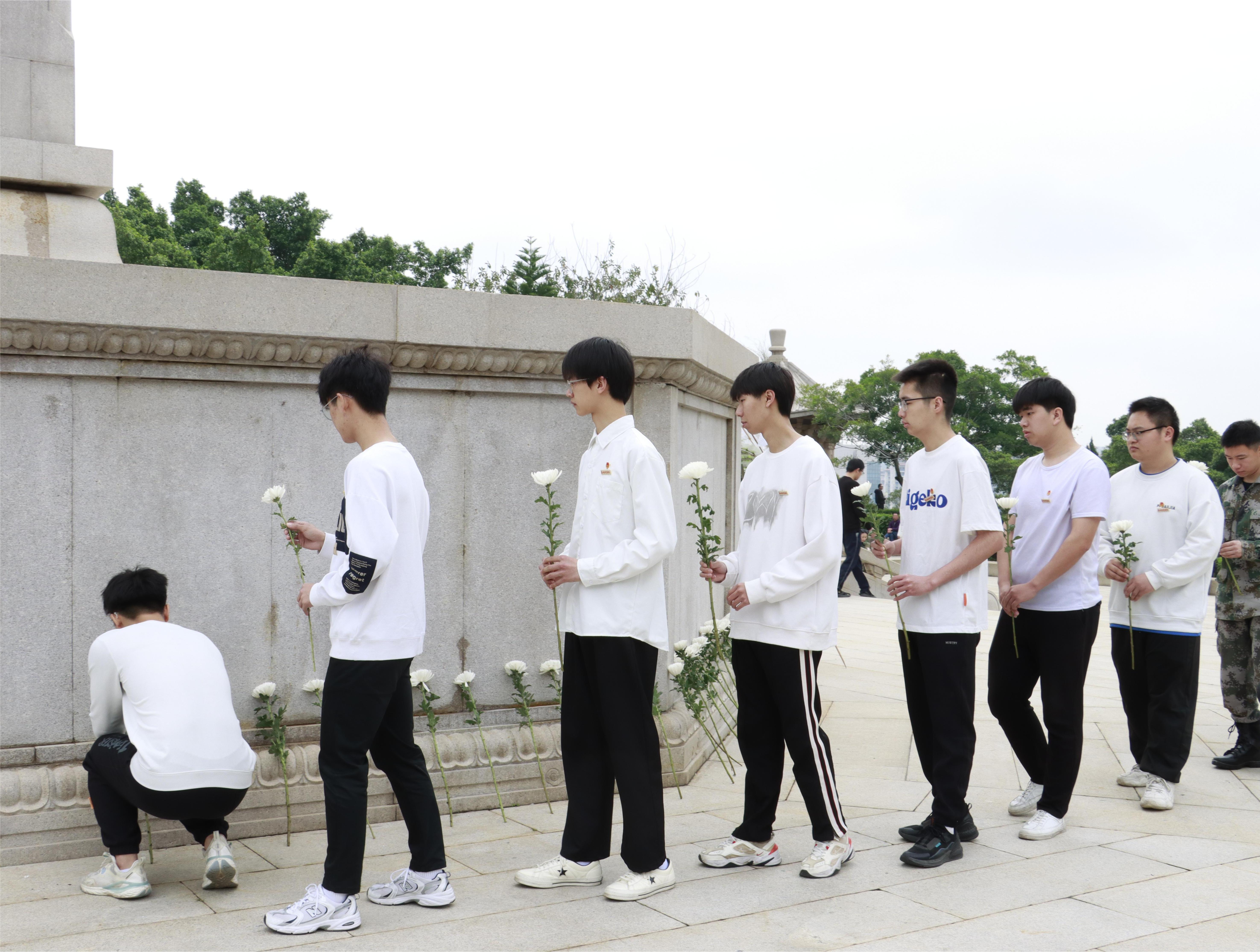 活动现场庄严肃穆。全体师生怀着无比崇敬的心情,缓步绕行,瞻仰烈士纪念碑,给烈士献上鲜花,并默哀,向逝去的英雄烈士们鞠躬致敬,以表达对革命先烈、民族英雄与前辈楷模的哀思和怀念。