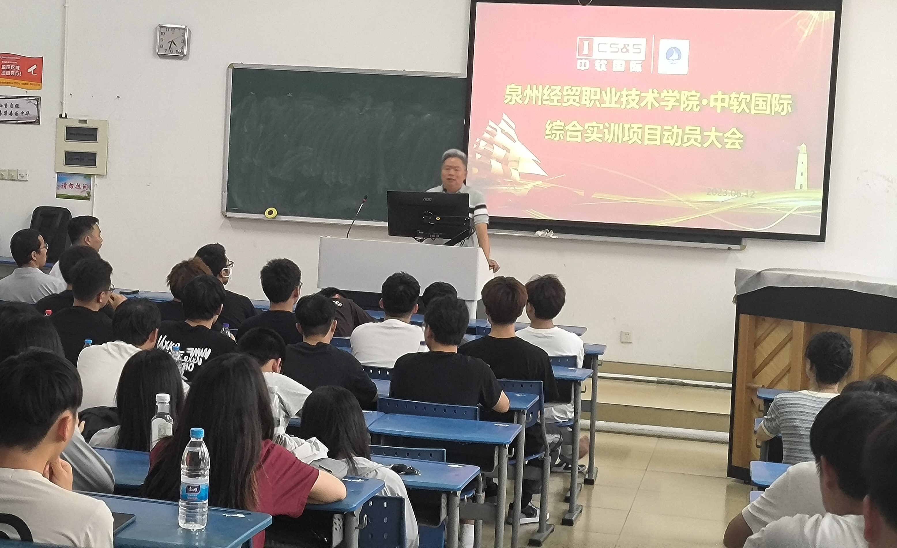我院人工智能技术应用专业(简称人工智能)是与中软国际联合培养共建专业,校企双方一直在不断探索产教融合培养新途径,2023年9月,2021级人工智能的学生将进入第五学期的校企合作实训课程学习,为使学生对实训课程的课程体系、教学师资、基地环境等有更深入的了解,6月12日信息系召开校企合作实训动员会,信息系主任李展宗、校企教师代表和2021级人工智能技术应用全体学生参加动员会。
