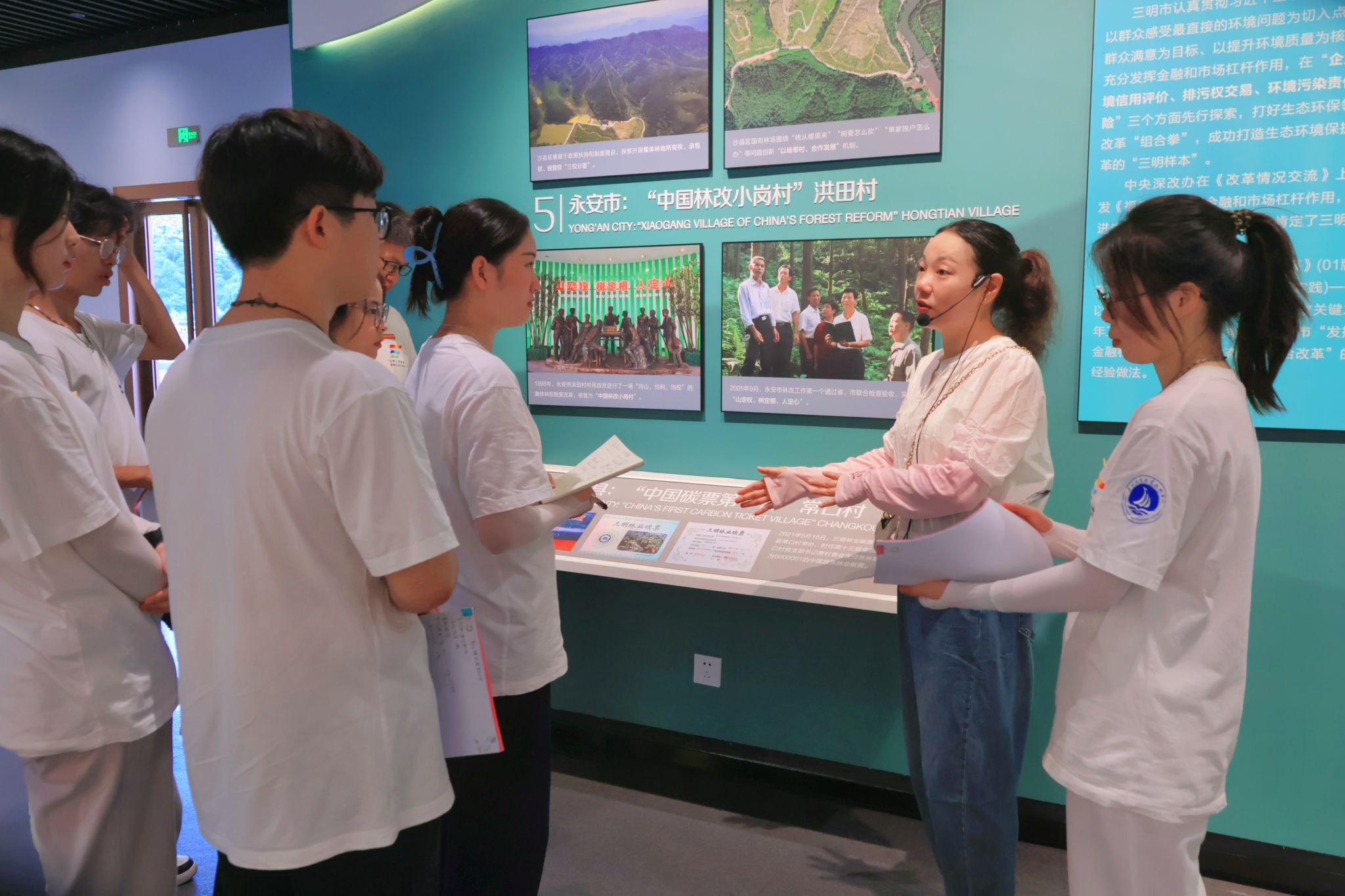 在“两山学堂”学习教育基地,队员们认真聆听常口村践行“两山理论”的生动历史,第一张“碳票”让大家从理论源头和具体实践中深刻领会到习近平生态文明思想的真理伟力和实践伟力。