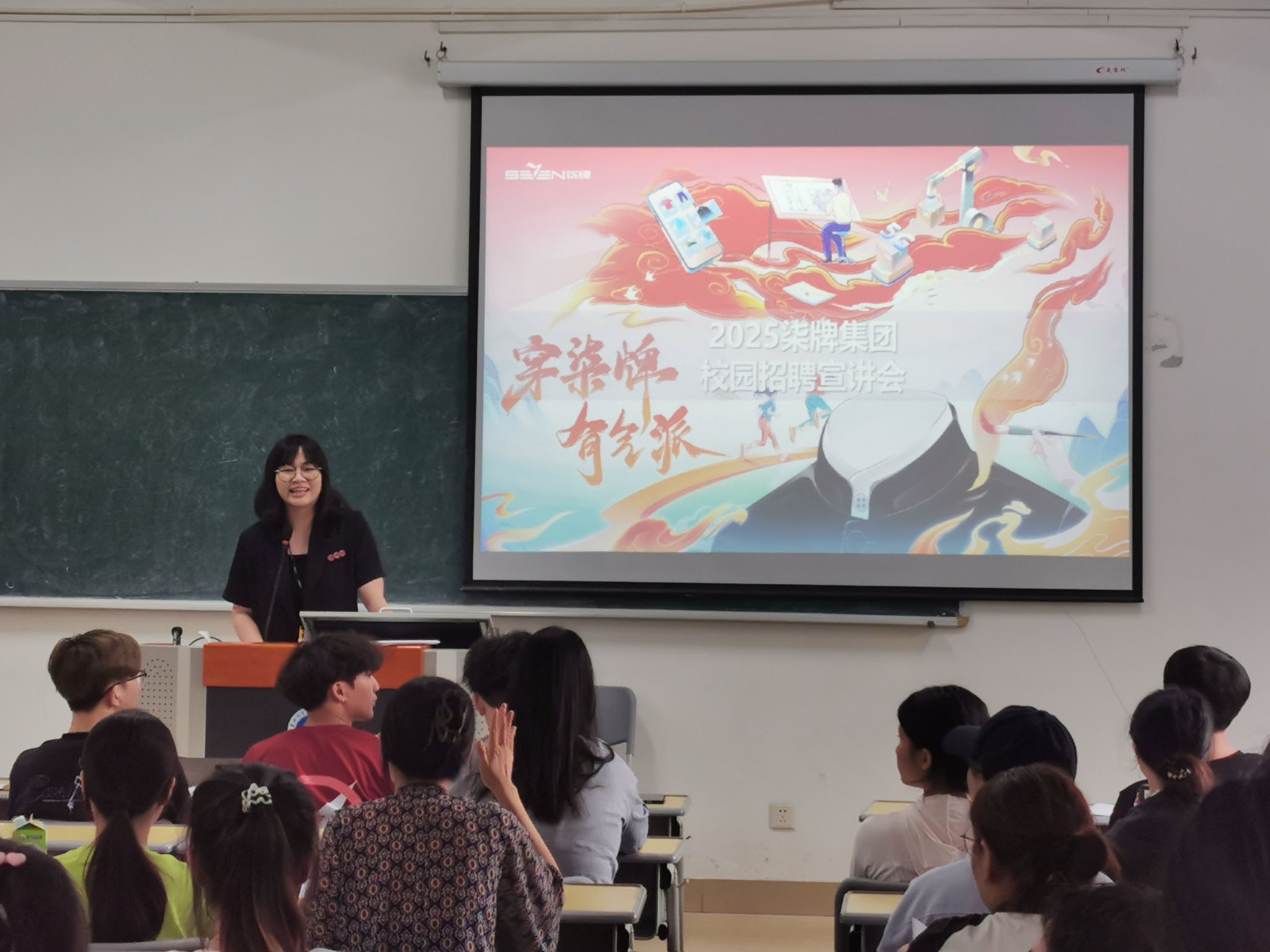 动员会后,九牧王股份有限公司、柒牌时装科技股份有限公司、三六一度(中国)有限公司、百锋(福建)服装有限公司、泉州凯蒙戈尔户外运动装备科技有限公司五家服装企业受邀分别做企业宣讲。他们详细介绍了各自的企业文化、业务领域、发展前景以及实习生培养计划和福利待遇,让同学们对企业有了全面和深入的了解。此次服装设计与工艺专业教研室精心遴选了十多家企业,涉及设计、版师、跟单理单、管理等岗位,旨在为学生提供丰富的实践机会,助力学生在未来的职业生涯中脱颖而出,成为行业的中坚力量。宣讲结束后,学生们纷纷与现场的企业工作人员面对面交流,更进一步了解实习情况。