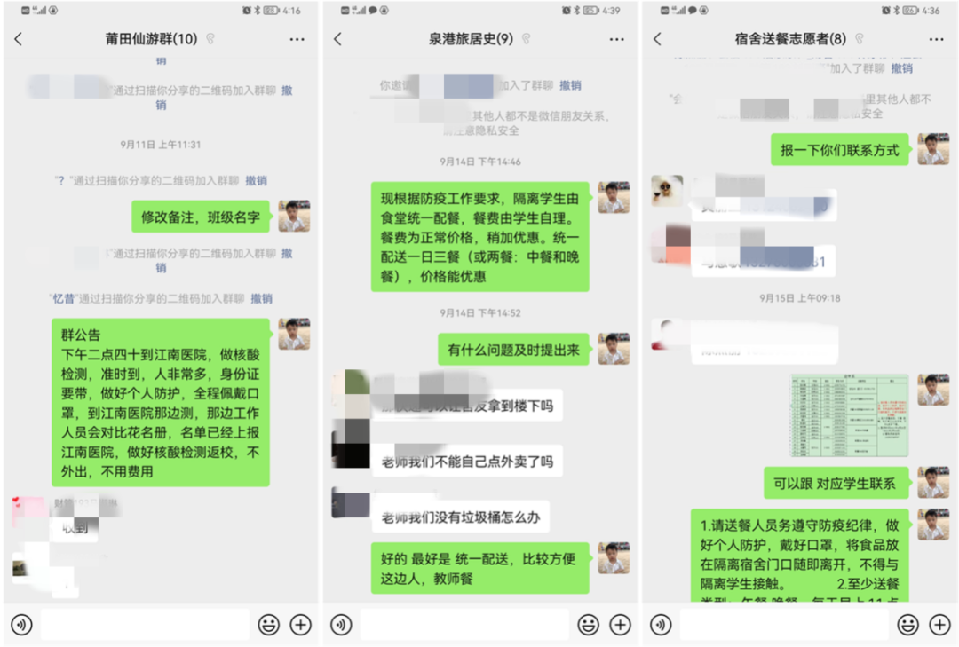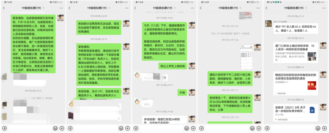 2021年9月初,面对来势汹汹的疫情,学院开启了“战时”模式。会审系积极落实学院各项抗疫部署要求,全体行政教辅人员中秋坚守岗位,齐抓共管,全天候关心关注师生的防疫安全。19级学生辅导员涂启坪老师,主动做好2019级在校579名学生的疫情防控工作,用实际行动践行初心使命。