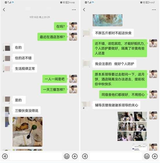 贴心服务,全过程暖心守护。疫情以来,学院迅速实行校园封闭管理,极大地保障了校园师生的健康安全,有效阻止了疫情向校园蔓延。在此期间,为解决同学们的实际困难,涂启坪始终战斗在学生宿舍一线,为学生分发防疫物资、订购餐食、分发生鲜物品,全力帮助居家(宿舍)学生,并通过微信、视频、走访慰问等方式及时了解每位学生的身心状况、开展心理辅导,帮助学生理性对待疫情,疏导干预情绪,消除焦虑恐惧,增强学生信心。在中秋佳节来临之际,为表达对学生的问候关怀和节日的美好祝福,涂老师深入学生宿舍健康监测点,看望慰问学生,并为每一位同学送上月饼、牛奶等慰问品,让同学过上一个舒心、开心、暖心的中秋佳节。