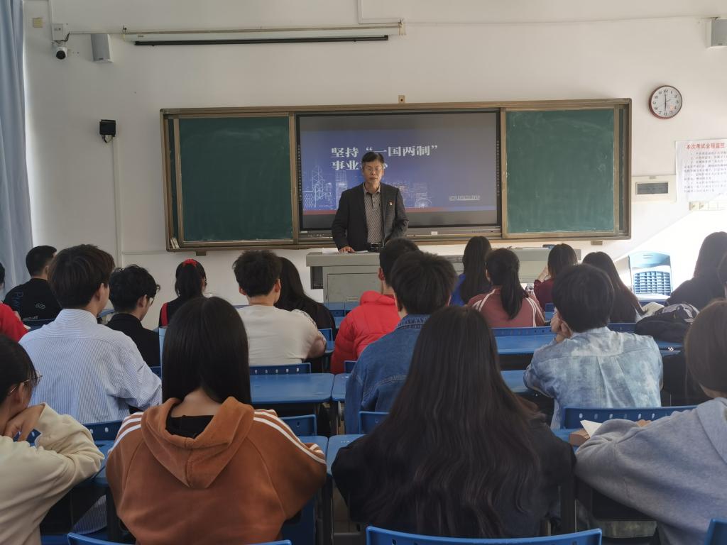 12月11日,党委委员、副院长花文苍在新教310室为电商191班和电商192班的学生上了一堂题为“坚持‘一国两制’事业初心”的形势与政策课。花副院长从不容挑战“一国两制”底线、正确看待“一国两制”内涵、稳步推进“一国两制”实践等方面,结合反中乱港时政热点和国家法律法规,引导学生坚守“一国两制”事业初心,激发了学生的爱国主义情怀和坚决维护祖国统一的决心。