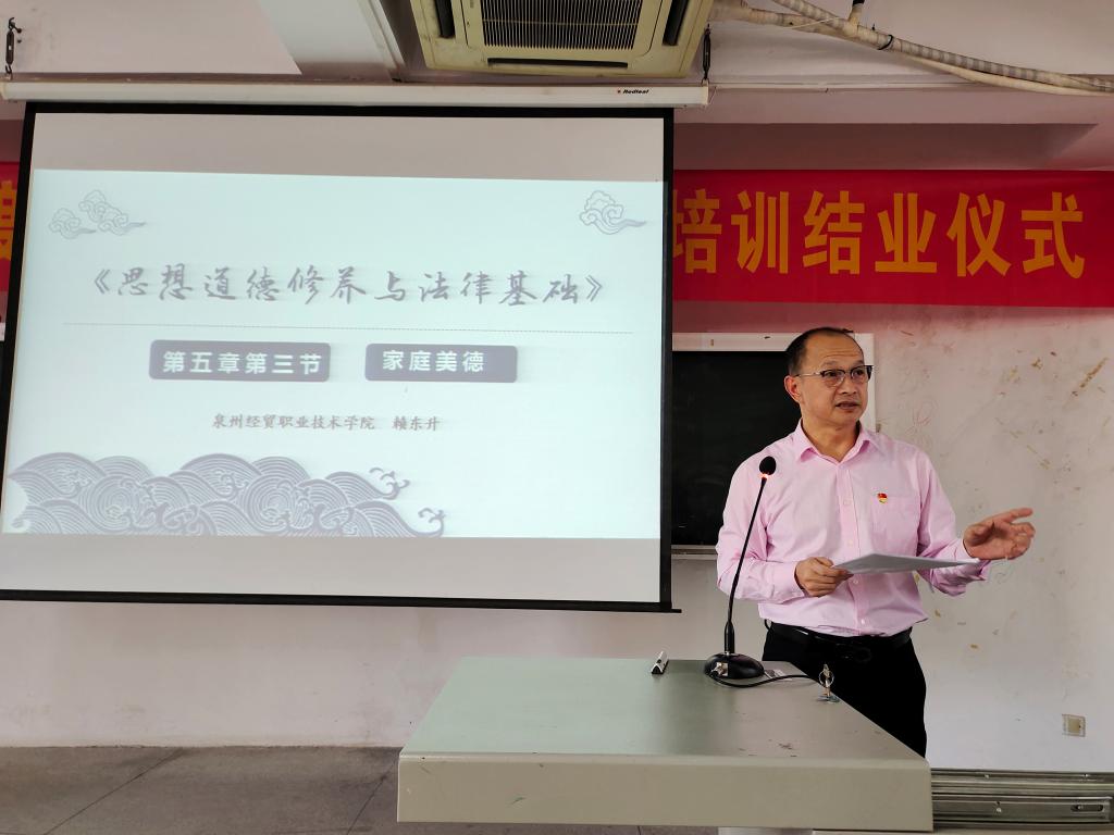 12月11日,党委委员、副院长赖东升以“传承家庭美德”为题在东教二楼梯形教室为高铁201班、202班和203班的学生上思政课。赖副院长引经据典,结合自己的人生阅历、生活经验,从不同视角向学生呈现了注重家庭家教家风,传承家庭美德的重要意义,并用自己的人生智慧引导学生要树立正确的婚姻恋爱观,遵守婚姻家庭中的传统美德,具有很强的感染力和说服力,调动了学生学习的积极性。