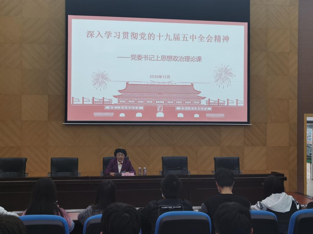 12月8日,党委书记周文心以“深入学习贯彻党的十九届五中全会精神”为题在学术报告厅为汽运204班、计应204班,青马社、新思想读书社和青年学生代表上了一堂形势与政策课。周书记在授课中通过实例、视频、讲故事等形式向学生们讲授党的十九届五中全会的主要成果以及“十三五”时期取得的成就,并提出三点希望:一是树立远大理想。青年要立志做大事,切实增强时代使命感和历史责任感,把树立远大理想和脚踏实地统一起来,把个人的远大理想与实现“十四五”规划和二〇三五年远景目标结合起来,与国家的前途命运、民族伟大复兴结合起来,勇担重任、立鸿鹄志,做志存高远的新时代新青年。二是要练就过硬本领。同学们要把学习知识、练就本领当成大学期间的首要任务,在学知识、长本领的问题上“下一番心无旁骛、静谧自怡的功夫”,既扎实打牢基础知识又及时更新知识,既刻苦钻研理论,又积极掌握技能,努力练就与新时代发展相适应的过硬本领,努力成长为党和人民事业需要的技能型人才和大国工匠。三是要勇担历史重任。要深入贯彻落实党的十九届五中全会精神,在开启实现“十四五”规划目标和二〇三五年远景目标的新征程中勇挑历史重担、矢志艰苦奋斗,以坚韧不拔的愚公移山精神攻坚克难,切实肩负起实现中华民族伟大复兴中国梦的责任担当,为全面建设社会主义现代化国家、实现第二个百年奋斗目标作出应有的贡献。