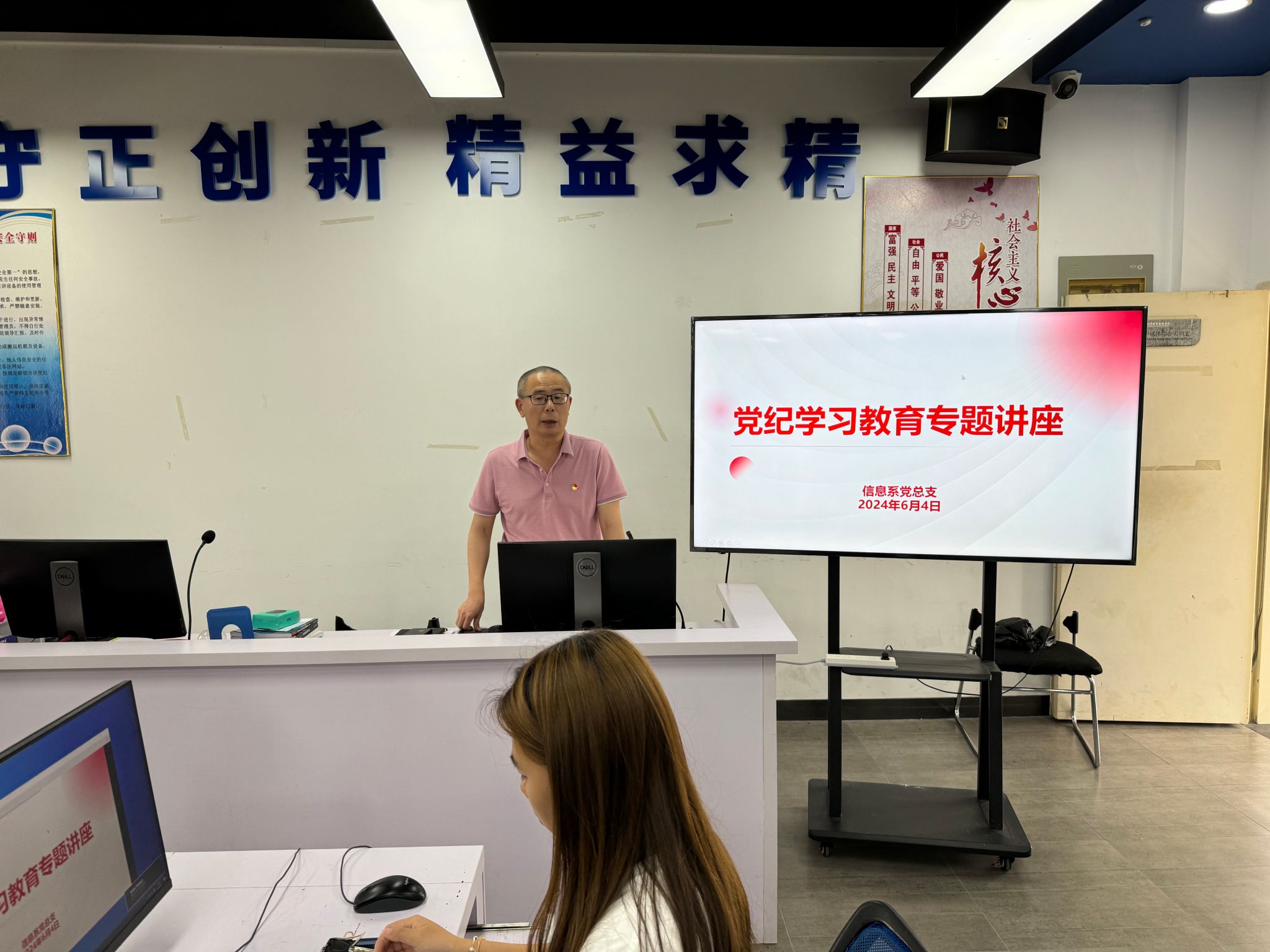 为进一步引导学生入党积极分子加深对党的纪律规矩的认识和理解,扎实推进党纪学习教育走深走实,6月4日,信息系党总支在东教610开展以“深化党纪学习教育,筑牢思想防线”为主题的党纪学习教育专题辅导讲座。