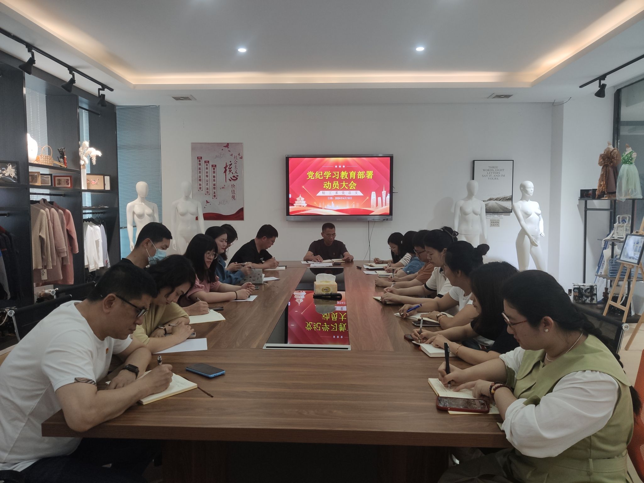 4月16日下午,轻工系党总支在唯丝萌品牌开发中心会议室召开党纪学习教育动员部署会,轻工系全体党员教师参加。