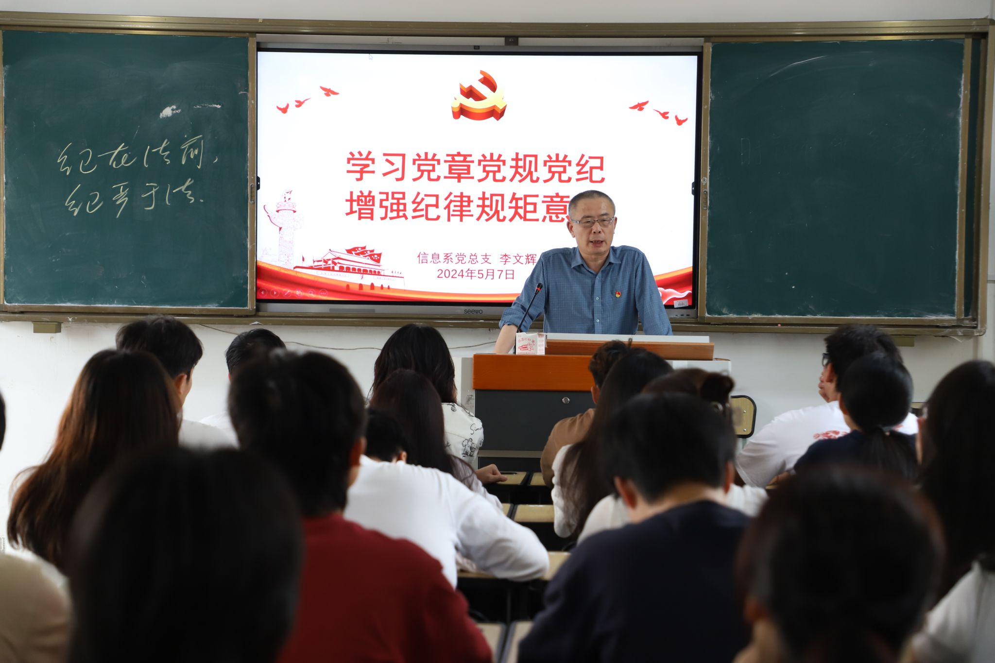 为进一步加强入党积极分子的党纪学习教育,提升政治理论素养和纪律规矩意识,5月7日下午,信息系党总支组织入党积极分子在东教506开展以“学习党章党规党纪,增强纪律规矩意识”为主题的党纪学习教育专题党课。